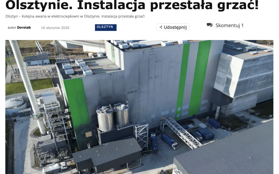 O sprawie pisze portal TKO – Twój Kurier Olsztyński (link w komentarzu). W artykule czytamy, że „jak przekazała Komenda Miejska Państwowej Straży Pożarnej w Olsztynie, incydent dotyczył dwóch pożarów tego samego etapu procesu technologicznego, czyli miejsca, w którym z pieca wysypywane są gorące pozostałości po spalaniu.”